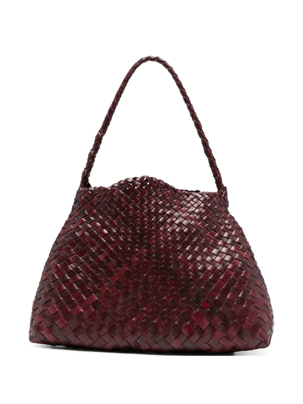woven-leather tote bag Highlights - Burgundy - Leather - Woven design - Top handles - Open top Imported Composition Outer: Leather 100% SIZE & FIT Model measurements Height 5 ft 11 in(1.8 m) Bust/Chest 32.67 in(83 cm) Hips 36.22 in(92 cm) Waist 24.4 in(62 cm) Measurement DEPTH 3.34 in(8.5 cm) HEIGHT 9.84 in(25 cm) WIDTH 13.81 in(35.1 cm) HANDLE 6.69 in(17 cm)