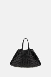Handwoven Basket. Slender Buffalo Calfskin Leather. Unlined. Two handles. Color: black. Details and Care Color: Nero Composition: 100% COW LEATHER Made in: India Sku: 8893DGS6MATBLACK Size and Fit Larghezza superiore: 17 cm Larghezza inferiore: 38 cm Lunghezza: 20 cm Altezza del manico (luce manico): 16,5 cm