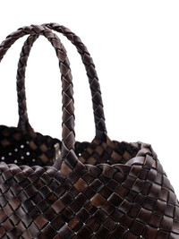 leather tote bag Highlights - Dark brown - Woven design - Braided top handles Imported Composition Outer: CALFSKIN 100% SIZE & FIT Measurement DEPTH 6.69 in(17 cm) HEIGHT 7.87 in(20 cm) WIDTH 14.96 in(38 cm)