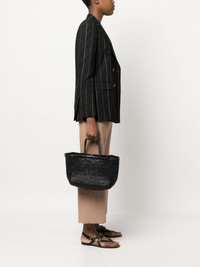 Triple Jump Small woven leather tote black calf leather interwoven design concealed press-stud fastening two top handles main compartment Imported Composition Outer: Calf Leather 100% SIZE & FIT Model measurements Height 5 ft 9 in(1.76 m) Bust/Chest 33.07 in(84 cm) Hips 38.58 in(98 cm) Waist 24.8 in(63 cm) Measurement DEPTH 5.9 in(15 cm) HANDLE 5.11 in(13 cm) HEIGHT 7.08 in(18 cm) WIDTH 15.74 in(40 cm)