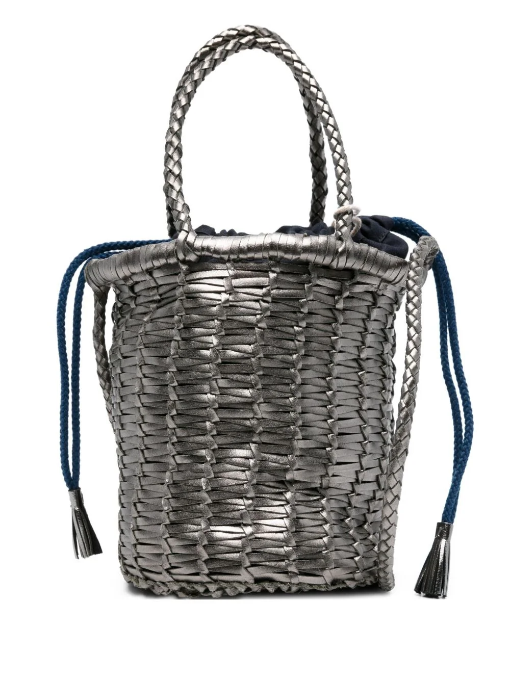 woven leather bucket bag Highlights - Silver - Woven leather - Top handles - Drawstring closure - Tassel details - Calf leather Imported Composition Outer: Calf Leather 100% SIZE & FIT Model measurements Height 5 ft 11 in(1.8 m) Bust/Chest 32.67 in(83 cm) Hips 36.22 in(92 cm) Waist 24.4 in(62 cm) Measurement DEPTH 5.9 in(15 cm) HEIGHT 7.87 in(20 cm) STRAP 41.33 in(105 cm) WIDTH 5.9 in(15 cm)