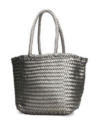 woven tote bag Highlights - Gunmetal grey - Woven design - Two top handles - Open top Imported Composition Outer: Leather 100% SIZE & FIT Measurement HEIGHT 9.05 in(23 cm) WIDTH 14.56 in(37 cm)