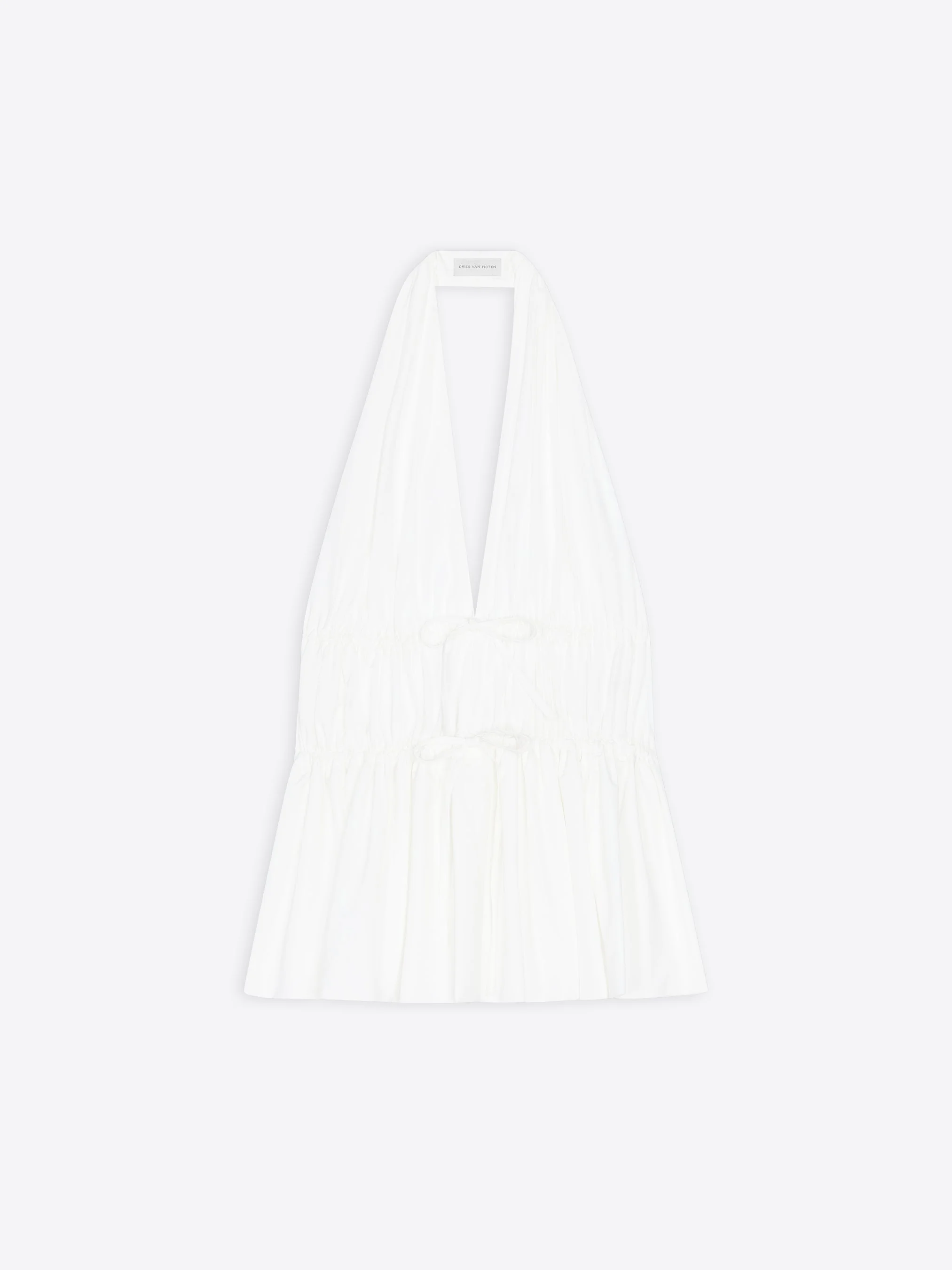Gathered halterneck top in midweight cotton polyester blend. DETAILS - 58% Polyester, 42% Midweight Cotton. - Regular fit. Open back. Halterneck. Gathered waist with drawstrings. Back tie closure. - Ref: 251-070741-1042 SIZE AND FIT Model is 179 cm / 70.5 inches and wears size 36.