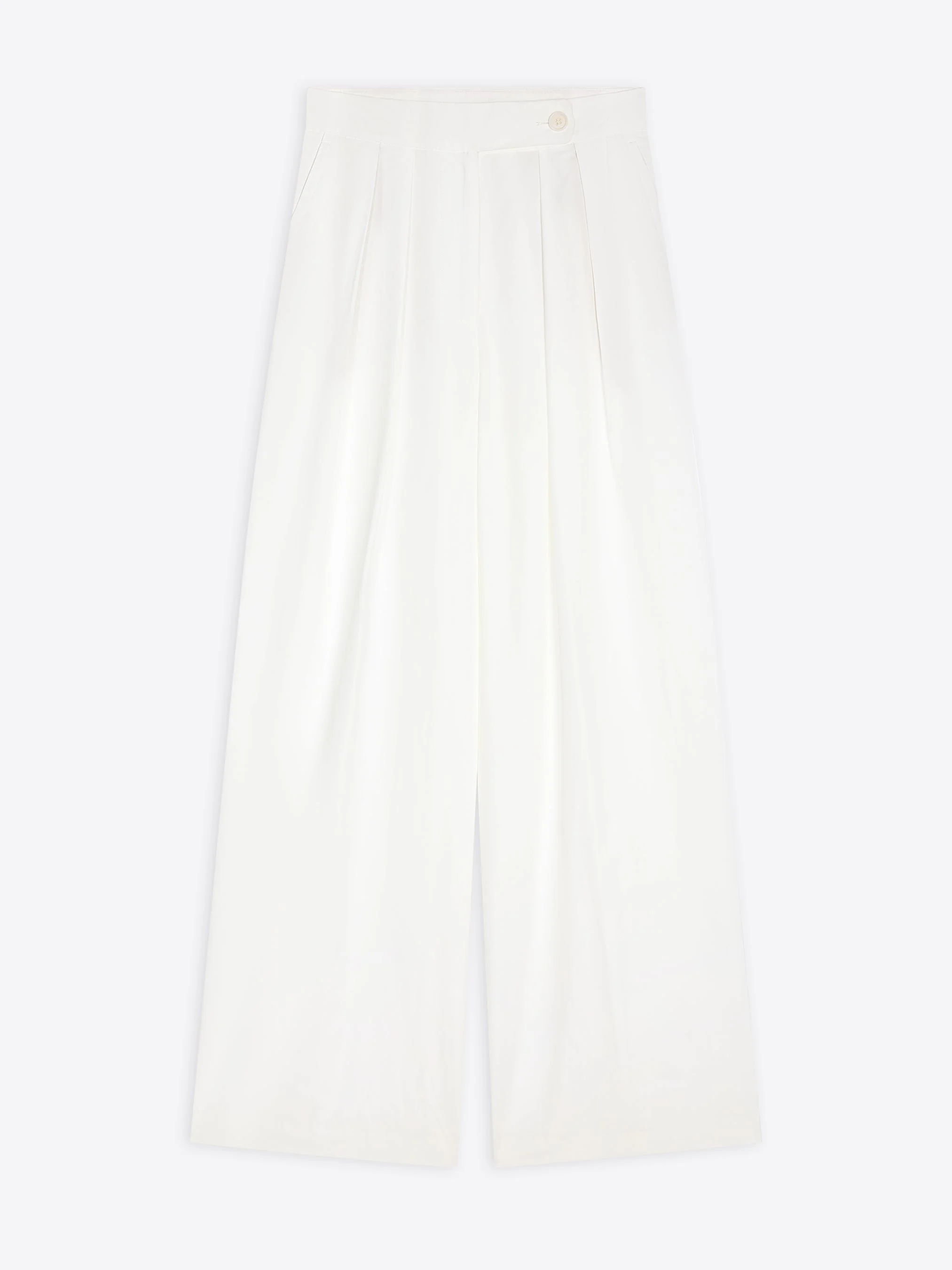 Wide pleated pants in midweight cotton polyester blend. DETAILS - 100% Midweight Cotton. - Regular fit. Low rise. Pleated. Wide leg. Side slit pockets. Front button and zip closure. - Ref: 251-070903-1042 SIZE AND FIT Model is 179 cm / 70.5 inches and wears size 36.