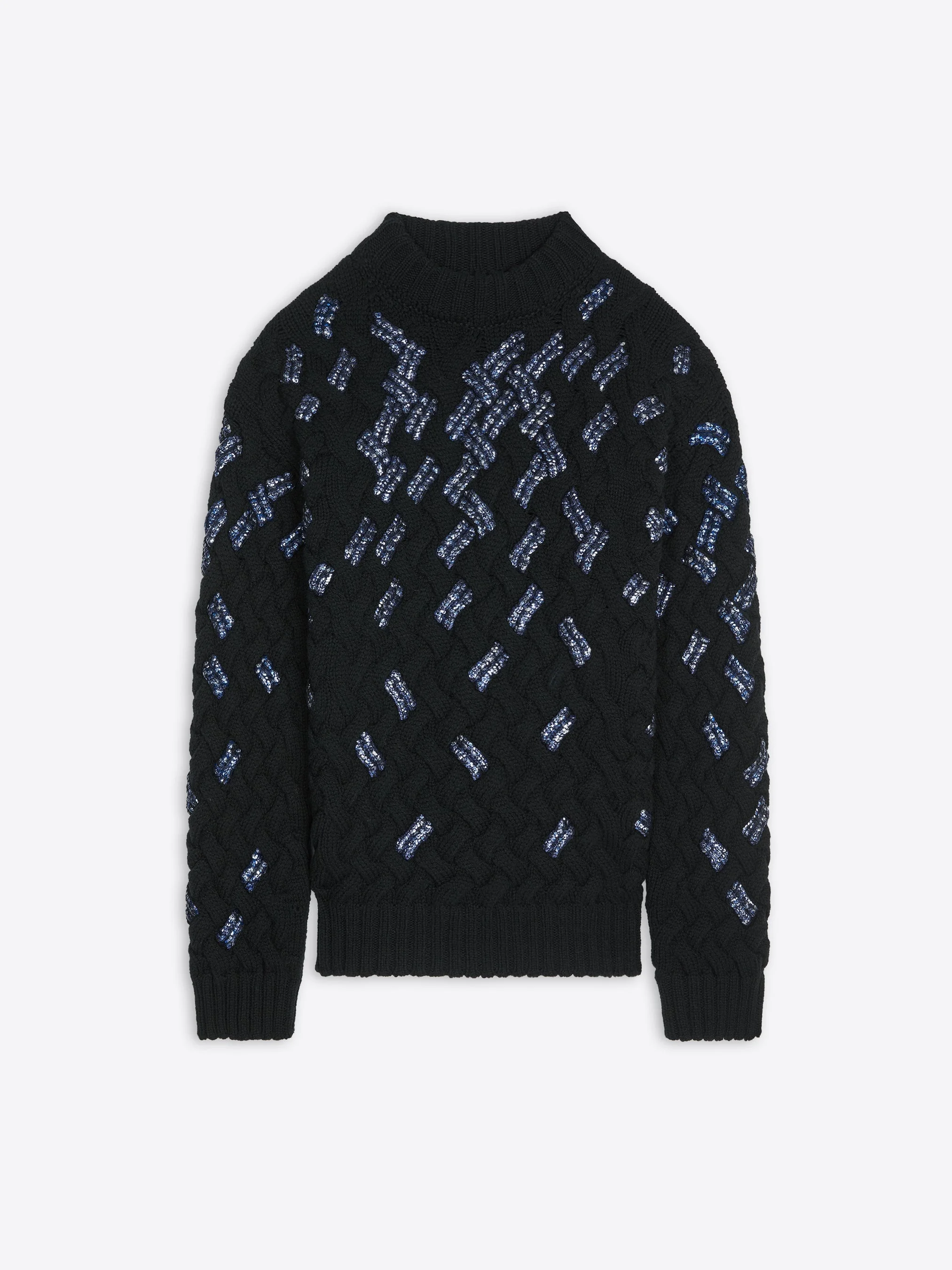 Loose fit cable-knit sweater with embroidery, in virgin wool. DETAILS - 100% Virgin Wool. - Embroidery. - Loose fit. Mock turtleneck collar. - Ref: 242-111236-9706 SIZE AND FIT Model is 180 cm / 71 inches and wears size L.