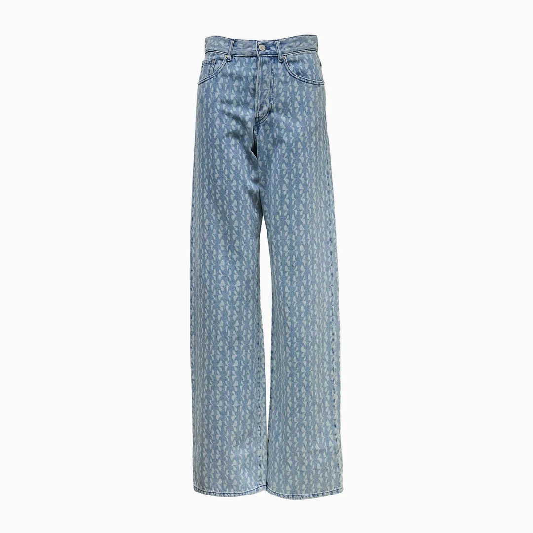 600078608DNM026 / PEYTON DEN/3387/975 - Five-pocket denim construction - All-over paisley print pattern - Wide-leg relaxed fit - Button fly closure - Classic belt loops - Premium cotton denim fabric - Contrast topstitching details Dries Van Noten 5-Pocket Wide Leg Trousers deliver contemporary sophistication with relaxed tailoring and premium denim construction. Crafted from high-quality cotton denim with distinctive all-over paisley print in soft blue tones, featuring classic five-pocket styling. The wide-leg silhouette and signature Belgian craftsmanship create an elevated casual piece that bridges streetwear and luxury fashion.