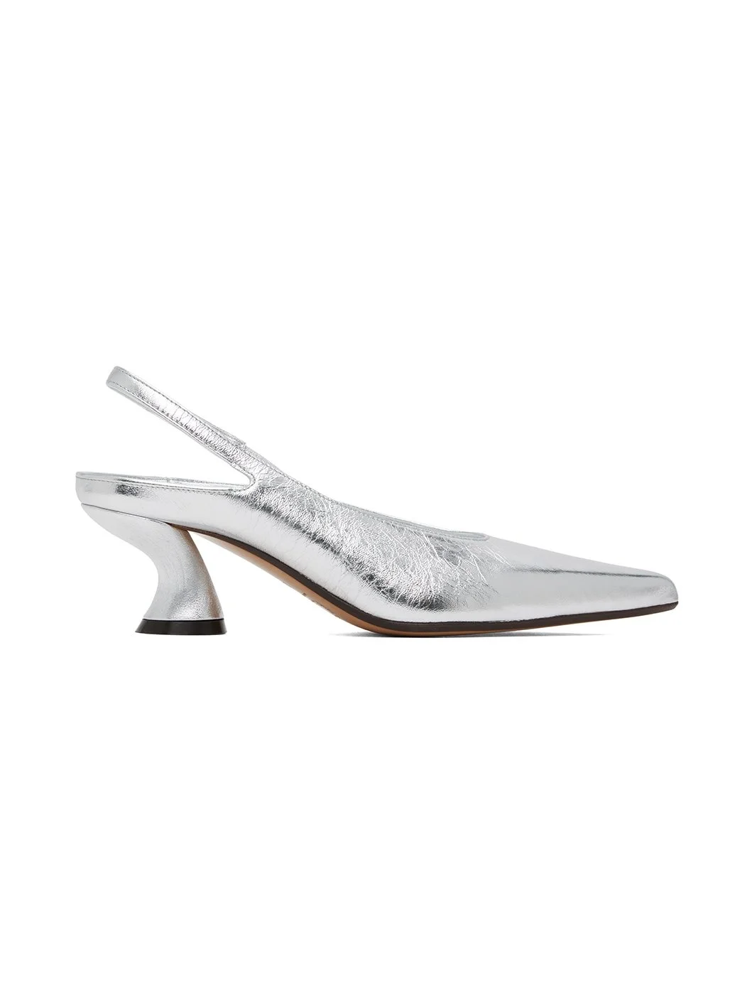 Crinkled leather heels in silver-tone. · Pointed toe · Partially elasticized slingback strap · Logo embossed at padded footbed · Grained leather lining · Covered sculptural kitten heel with rubber injection · Polished leather sole · Heel: H2.5" Supplier color: Silver Leather. Made in Italy 242358F122000