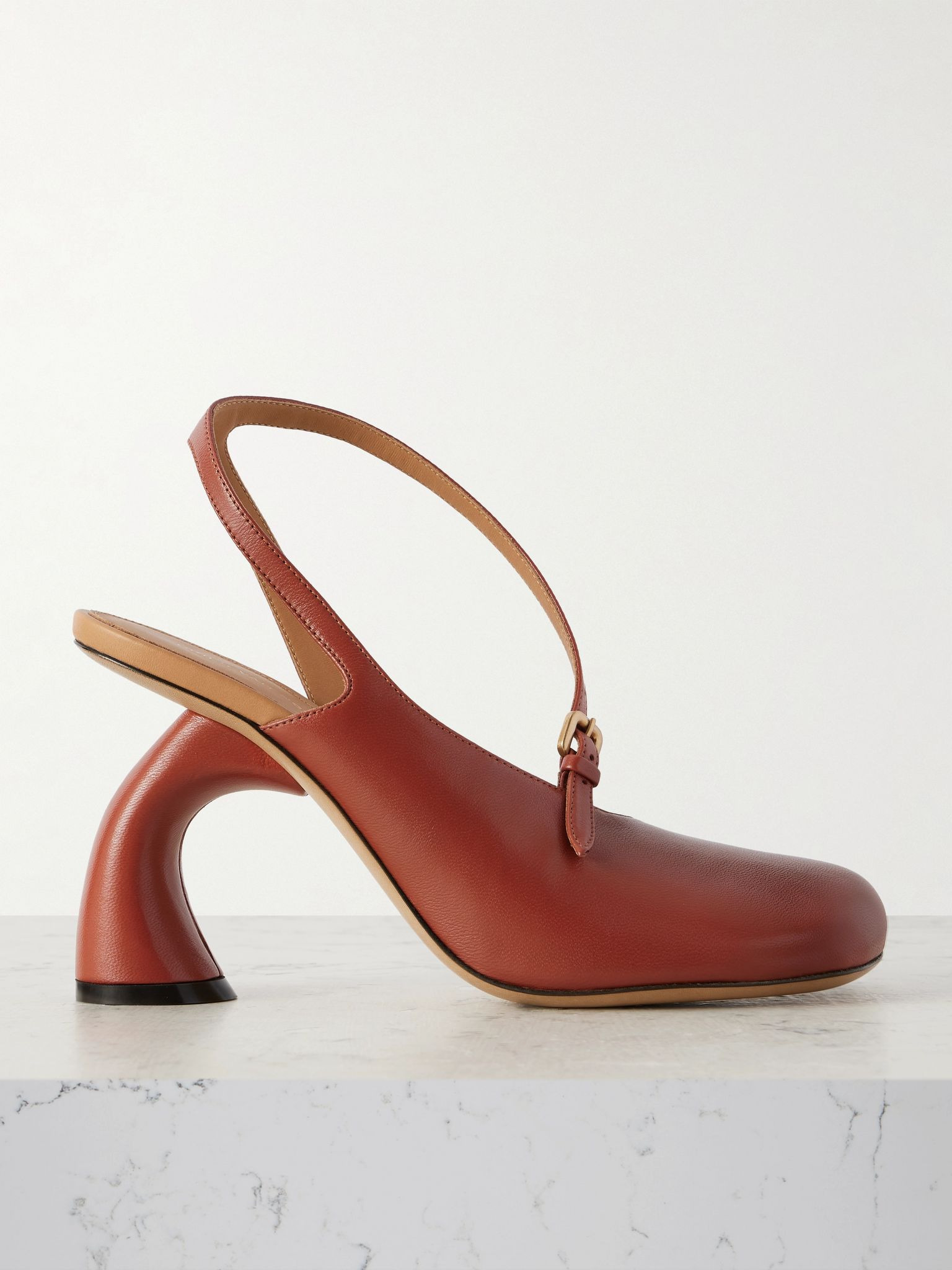 Dries Van Noten's pumps look like wearable works of art thanks to the signature curved block heels. They're made from smooth leather with cutouts and asymmetric straps. Size & Fit - Fits true to size, take your normal size - Italian sizing Details & Care - Heel measures approximately 90mm/ 3.5 inches - Brick leather (Lamb) - Buckle-fastening slingback strap