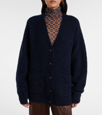 Simple and refined, this Dries Van Noten cardigan is crafted from an alpaca and wool blend for a cozy, warm feel. The design features a classic buttoned front, a V-neckline, and two patch pockets. Product Details - Material: 60% alpaca wool, 25% wool (merino wool), 15% polyamide - Care instructions: dry clean - Made in China - Designer color name: Navy - Item color: blue - Collar: V-neck - Pockets: patch pockets - Closure: buttoned front - Item number: P01093157 Size & Fit - True to size - For a closer fit, we recommend taking one size down - Dropped shoulders - Oversized - Slightly stretchy fabric - Falls below the hip - The model seen in the picture is 178cm-5'10" and wearing a size XS
