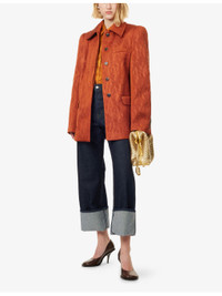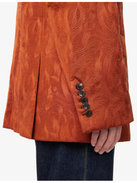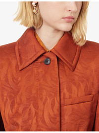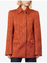 PRODUCT DETAILS - Dries Van Noten woven jacket - 70% polyester, 30% polyurethane; lining 100% viscose - Concealed button fastenings at front - Regular fit, spread collar, long sleeves, padded puffed shoulders, long sleeves, buttoned cuffs, welt pocket and two flap pockets at front, all-over tonal geometric pattern, textured fully lined, double vent - Dry clean - Made in Morocco - True to size - Size UK 10: length 31in / 79cm - Model is 5ft 10in / 1.78m and wears a size UK 10 - Midweight, stretchy Ref: R04508445
