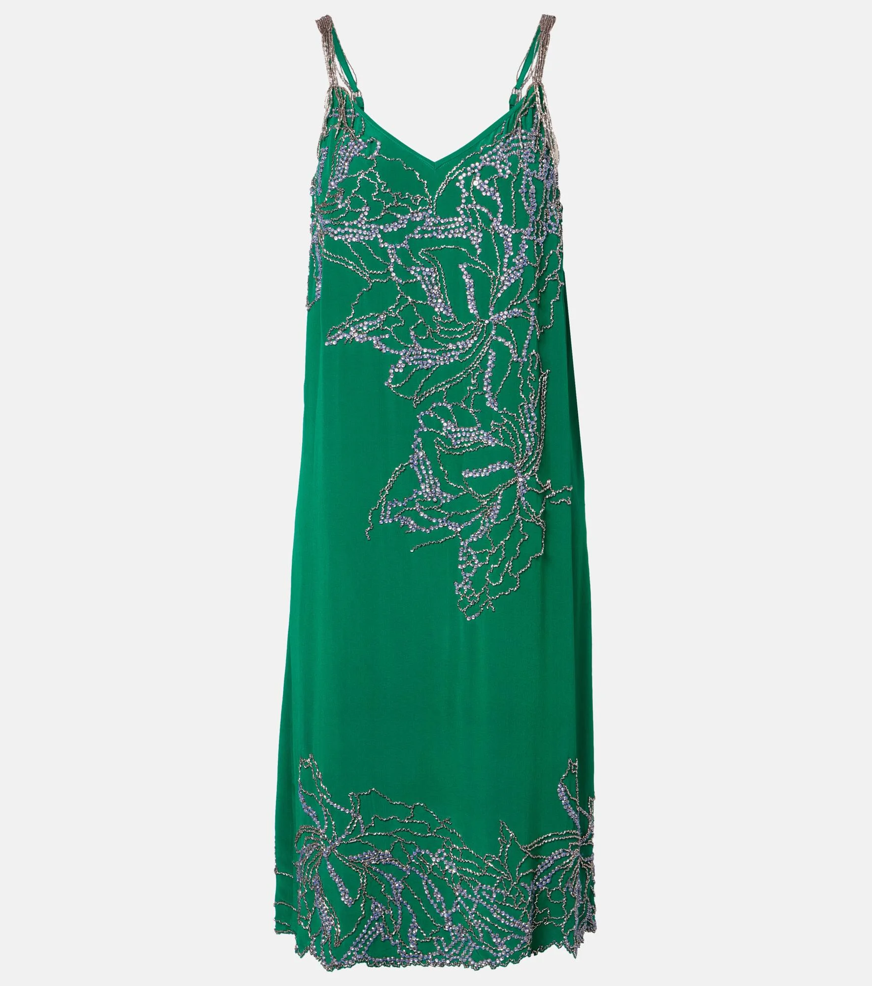 Juxtaposing a poetic sensibility with intelligent tailoring, Dries Van Noten creates styles that are always unique. Made from silk, this slip dress features an intricate beaded pattern and an asymmetric hemline. Product Details - Material: 100% silk - Care instructions: dry clean - Made in India - Designer color name: Green - Item color: green - Adjustable shoulder straps - Collar: V-neck - Item number: P01106653