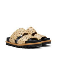 Woven raffia flat sandals in beige. · Open toe · Straps at vamp · Molded leather footbed · Suede trim at welt · Treaded Vibram Gumlite® rubber sole Supplier color: Natural