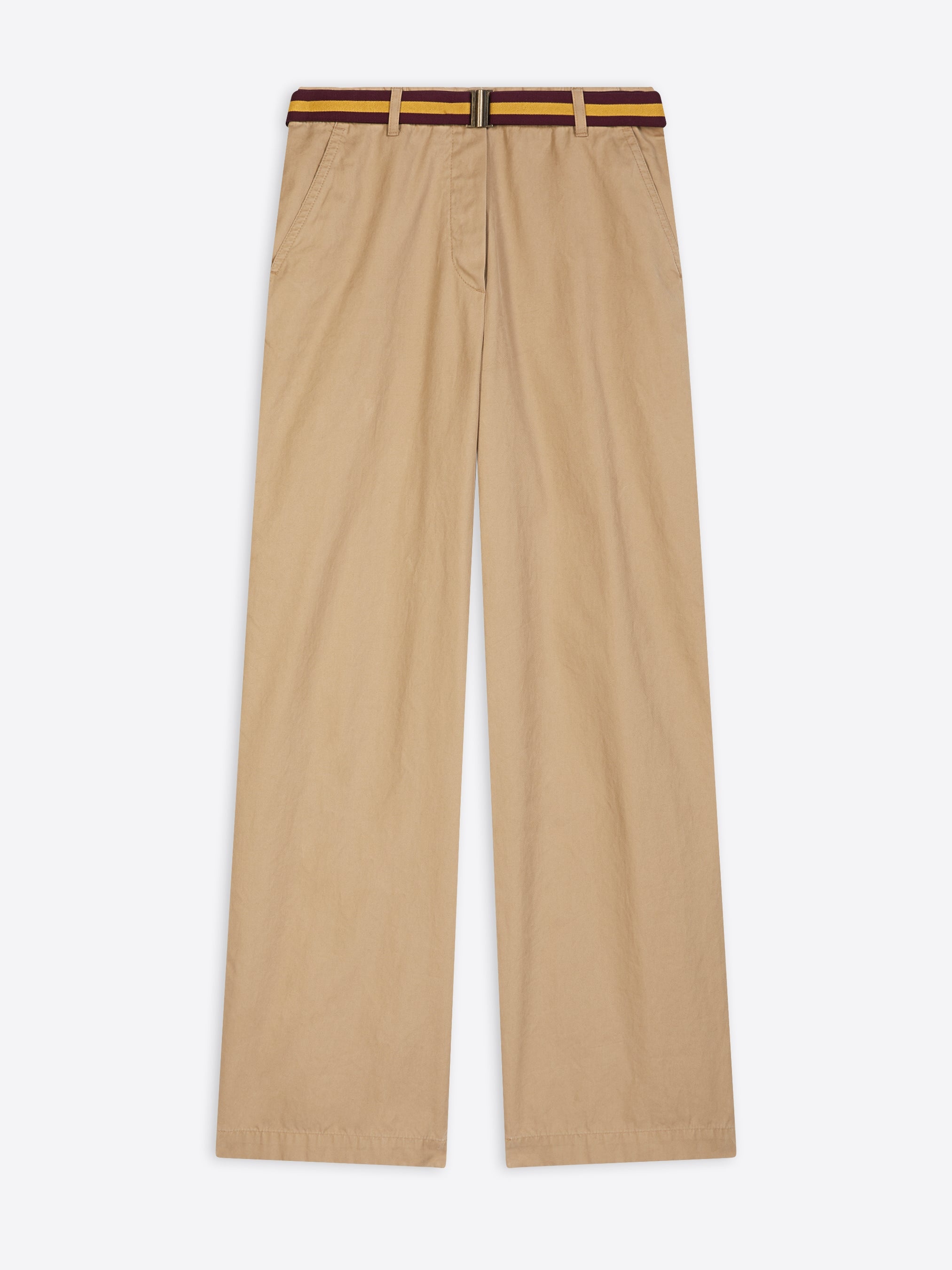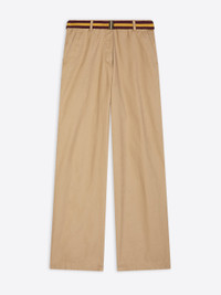 Straight chino pants in cotton, with elastic belt. DETAILS - 100% Cotton. - Regular fit. Mid rise. Straight leg. Side slit pockets and back jetted pockets. Belted. Front button closure. - Ref: 241-010947-8131 SIZE AND FIT Model is 178 cm / 70 inches and wears size 36.