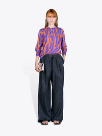 Loose fit belted pants with irregular pleats, in denim. DETAILS - 100% Cotton. - Loose fit. High rise. Straight leg. Pleated. Side slit pockets and back welt pockets. Belted. Front closure. - Ref: 261-130937-3385 SIZE AND FIT Model is 178 cm / 70 inches and wears size 36.
