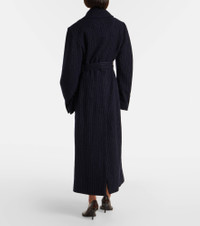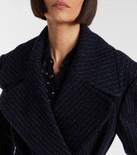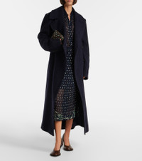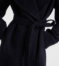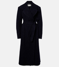 Refine your cold-weather wardrobe with this floor-length Dries Van Noten pinstriped coat. Crafted from wool, the sleek silhouette features structured shoulder pads, peak lapels, side pockets, a self-tie belt, and a concealed zip closure. Product Details - Material: 100% wool - Care instructions: dry clean - Made in Poland - Designer color name: Navy - Item color: blue - Lining: 100% viscose - Closure: concealed zipped front - Self-tie belt - Pockets: internal pocket, side slit pockets - Shoulder pads - Cuff: buttoned - Vent: single - Item number: P01092101 Size & Fit - Fits large to size - we recommend trying one size smaller - Shoulder pad inserts - Loose fit, comes with belt - Non-stretchy fabric - The model seen in the picture is 178cm-5'10" and wearing a size FR 34