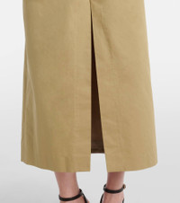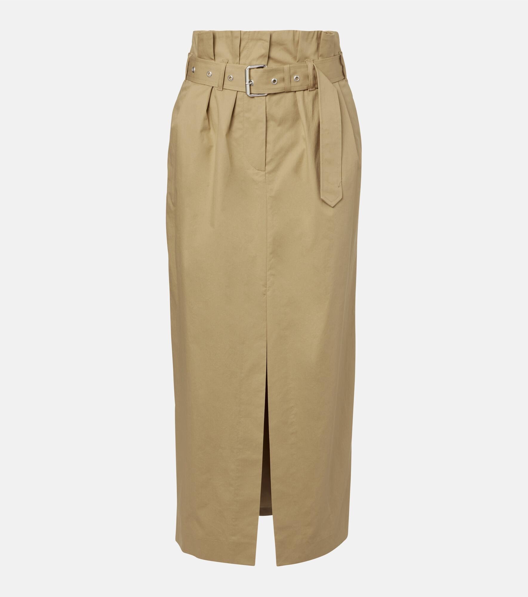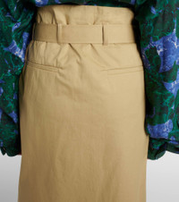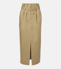 Crafted from breathable cotton, this Dries Van Noten midi skirt will easily slot into your everyday rotation. It features artful pleating to accentuate the waist, a detachable belt, and a minimalist silhouette with a front split. Product Details - Material: 100% cotton - Care instructions: machine wash at 30 degrees - Made in Romania - Designer color name: Beige - Item color: beige - Lining: 100% viscose - Closure: zipper, hook fastening - Pockets: side slit pockets, back pockets - Detachable belt - Item number: P01030442 Size & Fit - True to size - Non-stretchy fabric - High-waisted - The model seen in the picture is 178cm-5'10" and wearing a size FR 36