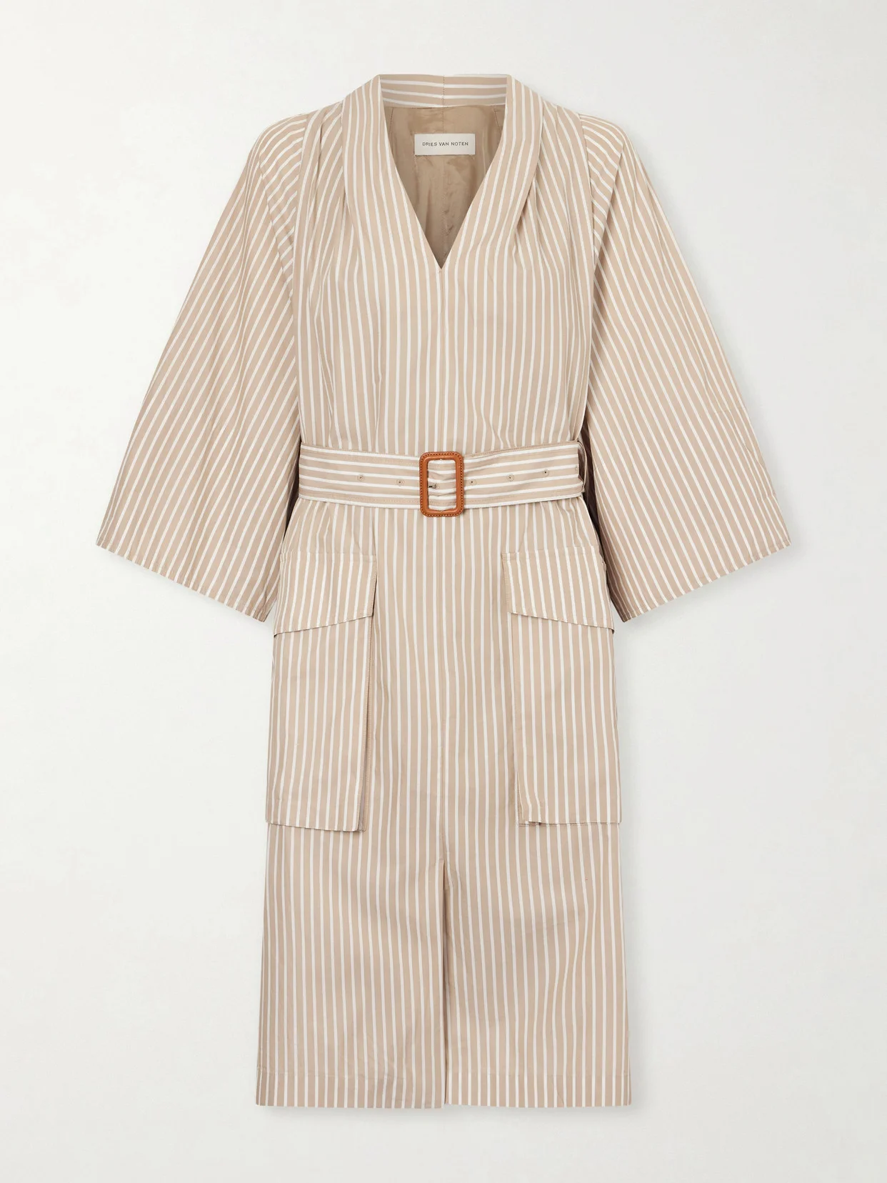 Dries Van Noten's designs really come alive with contrasting colors and textures, so keep that in mind when styling this dress. It's cut from striped cotton and has a chunky belt.