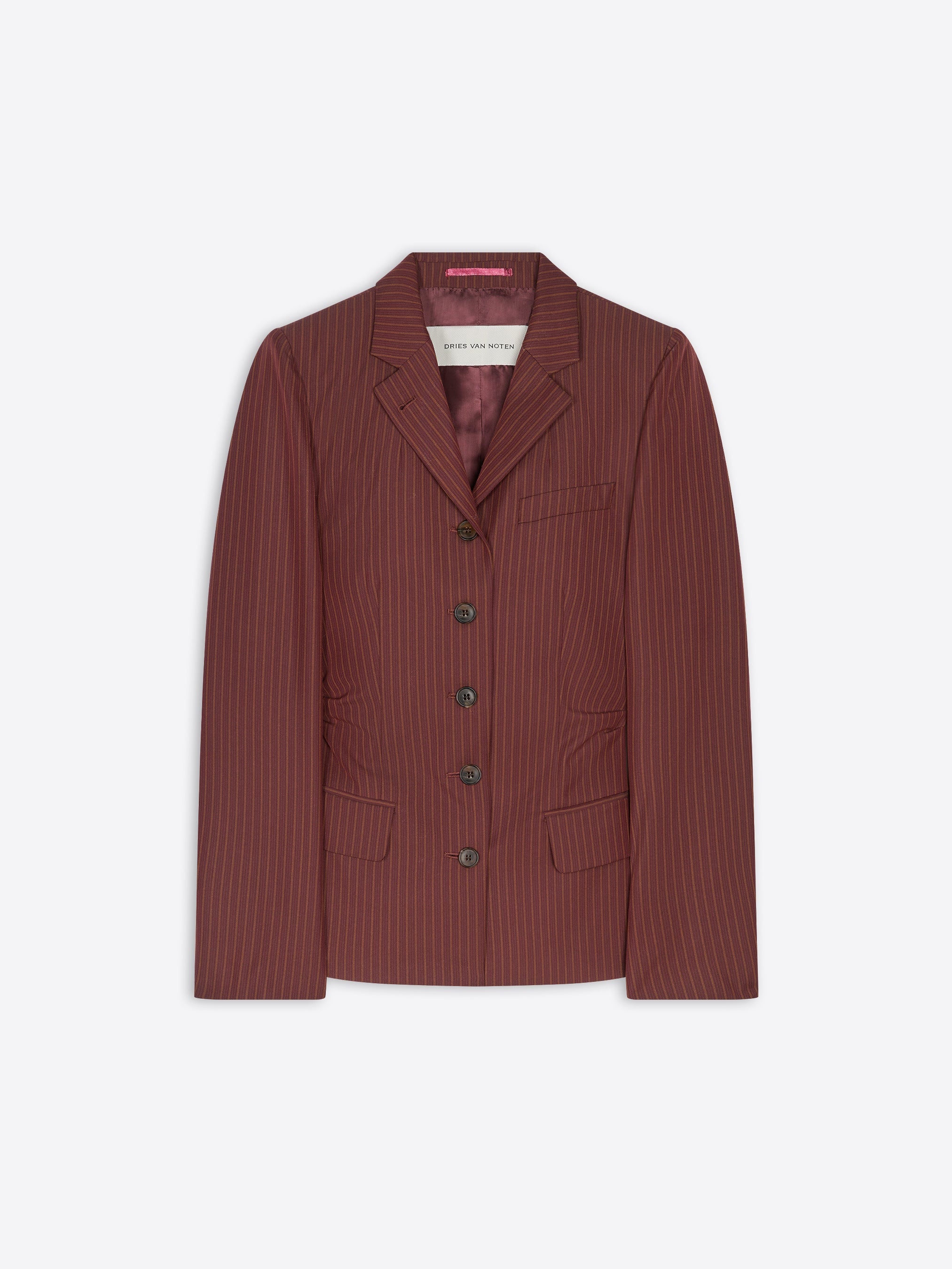 Blazer with adjustable belt at the back, in striped wool blend. DETAILS - 75% Wool, 25% Polyester. Lining: 100% Viscose. - Striped pattern. - Boxy fit. Single-breasted. Front patch pockets. Adjustable belt at back. Front button closure. - Ref: 251-010420-1065 SIZE AND FIT Model is 179 cm / 70.5 inches and wears size 36.