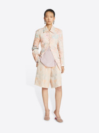 Fitted blazer with accentuated waist, in floral jacquard. DETAILS - 69% Linen, 31% Polyester. Lining: 100% Viscose. - Designed to be worn open from the waist down. Floral jacquard. - Fitted. Padded shoulders. Single-breasted. Front welt pockets. Accentuated waist. Front fabric-covered button closure. - Ref: 251-010400-1538 SIZE AND FIT Model is 179 cm / 70.5 inches and wears size 36.
