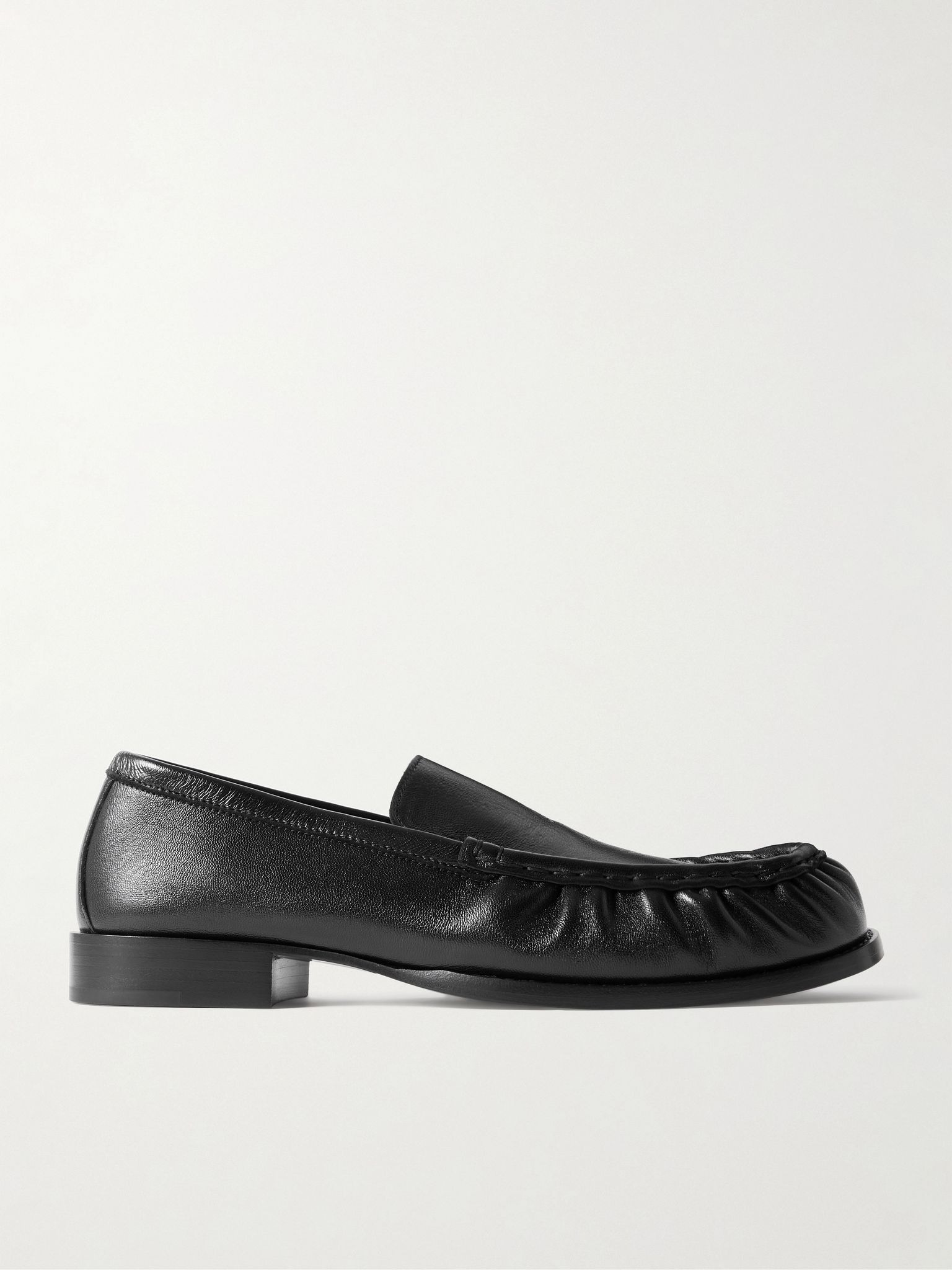 Dries Van Noten's loafers are understated and minimal, allowing the quality craftsmanship to be the main focus. They've been made in Italy from smooth black leather that's gathered along the rounded toes and have stacked heels. Size & Fit - Fits true to size, take your normal size - Italian sizing Details & Care - Slight heel - Black leather (Lamb) - Slip on
