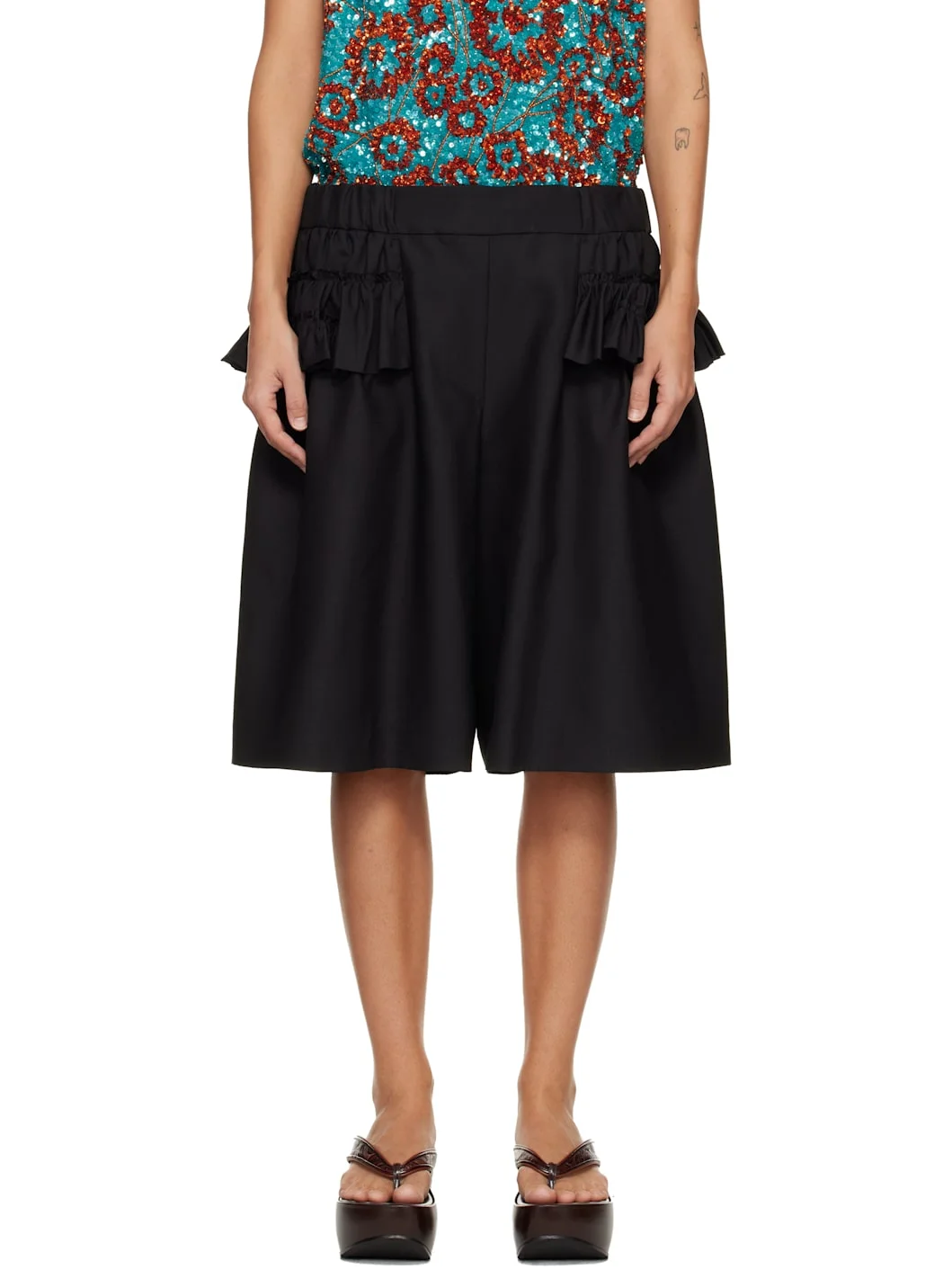 Plain-woven wool- and silk-blend shorts. · Concealed drawstring at elasticized waistband · Two-pocket styling · Ruffled trim at sides · Full satin lining Supplier color: Black Body: 71% wool, 29% silk. Lining: 100% viscose. Made in Bulgaria 261358F088009