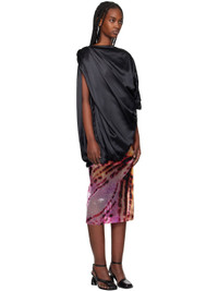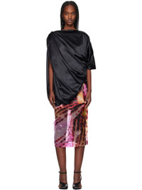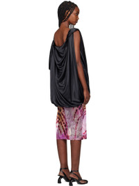 Stretch silk satin blouse. Draping throughout. - Boatneck - Asymmetric bubble hem - Twisted detailing at shoulder and armscye - Low back - Fully lined Supplier color: Black