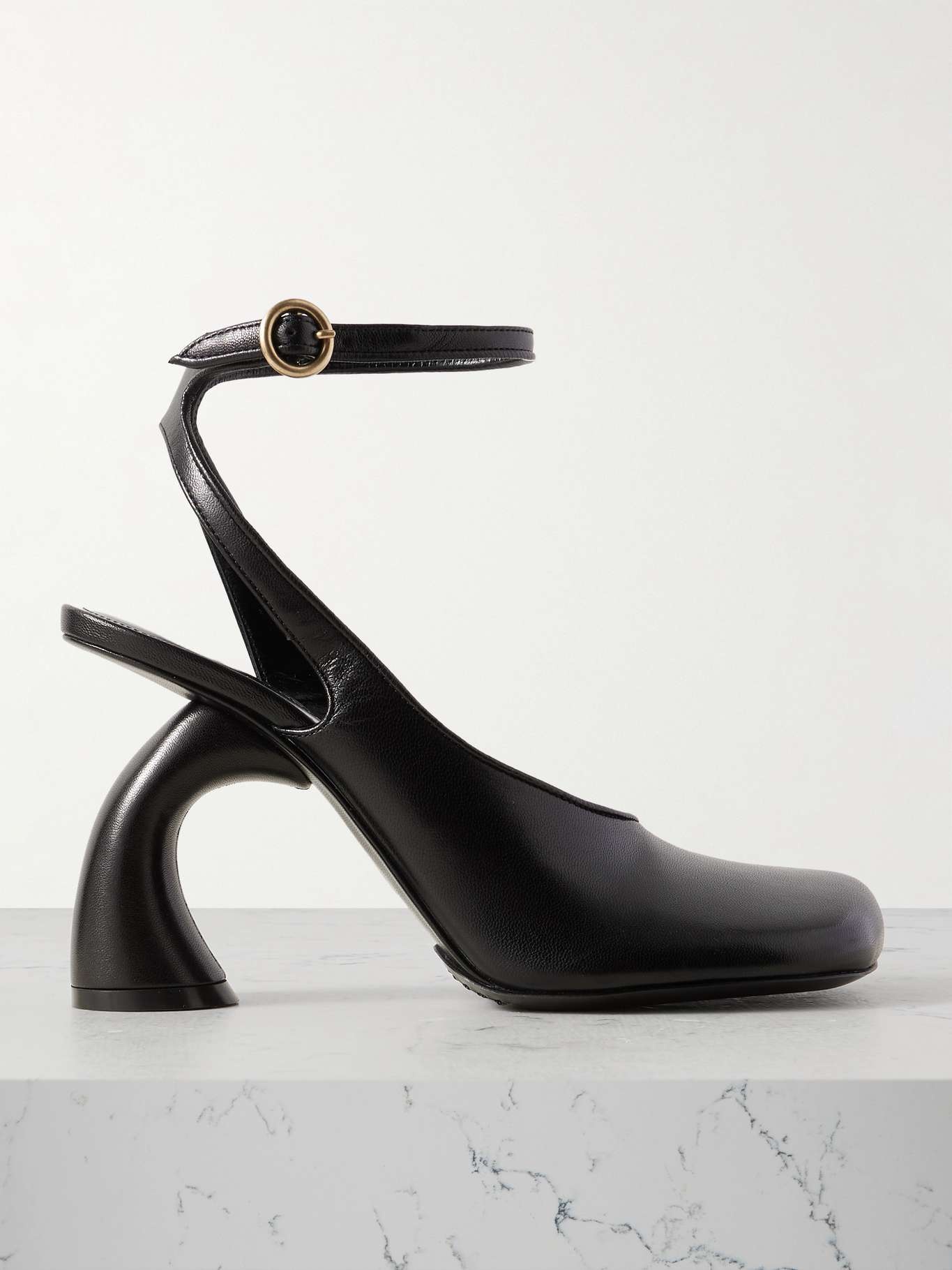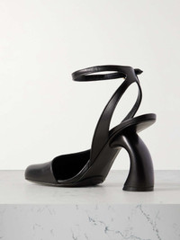 EDITORS'NOTES Sculptural, architectural footwear has become a defining element of Dries Van Noten's recent collections. These pumps are crafted from smooth leather and cut with curved lines and straps that mirror the angled block heel. Small to size. See Size & Fit notes. SIZE & FIT - Fits true to size, take your normal size - Those with wide feet may wish to take the next half size up - Italian sizing DETAILS & CARE - Heel measures approximately 95mm/ 4 inches - Black leather (Calf) - Buckle-fastening ankle strap