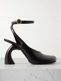 Sculptural, architectural footwear has become a defining element of Dries Van Noten's recent collections. These pumps are crafted from smooth leather and cut with curved lines and straps that mirror the angled block heel. Small to size. See Size & Fit notes. Size & Fit - Fits true to size, take your normal size - Those with wide feet may wish to take the next half size up - Italian sizing Details & Care - Heel measures approximately 95mm/ 4 inches - Black leather (Calf) - Buckle-fastening ankle strap