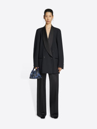 Oversized double-breasted blazer in lightweight wool gabardine, with satin scarf lapel. DETAILS - 82% Wool, 10% Silk, 8% Polyester. Lining: 100% Viscose. - Oversized fit. Lined. Scarf lapel. Double-breasted. Front jetted pockets. Buttoned cuffs. Front button closure. - Ref: 242-010411-9251 SIZE AND FIT Model is 180 cm / 71 inches and wears size M.