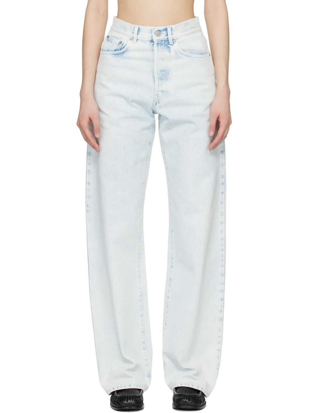 Non-stretch denim jeans. · Fading throughout · Belt loops · Five-pocket styling · Button fly · Logo patch at back waistband · Logo-engraved silver-tone hardware Supplier color: Light Blue 100% cotton. Made in Italy 261358F069002