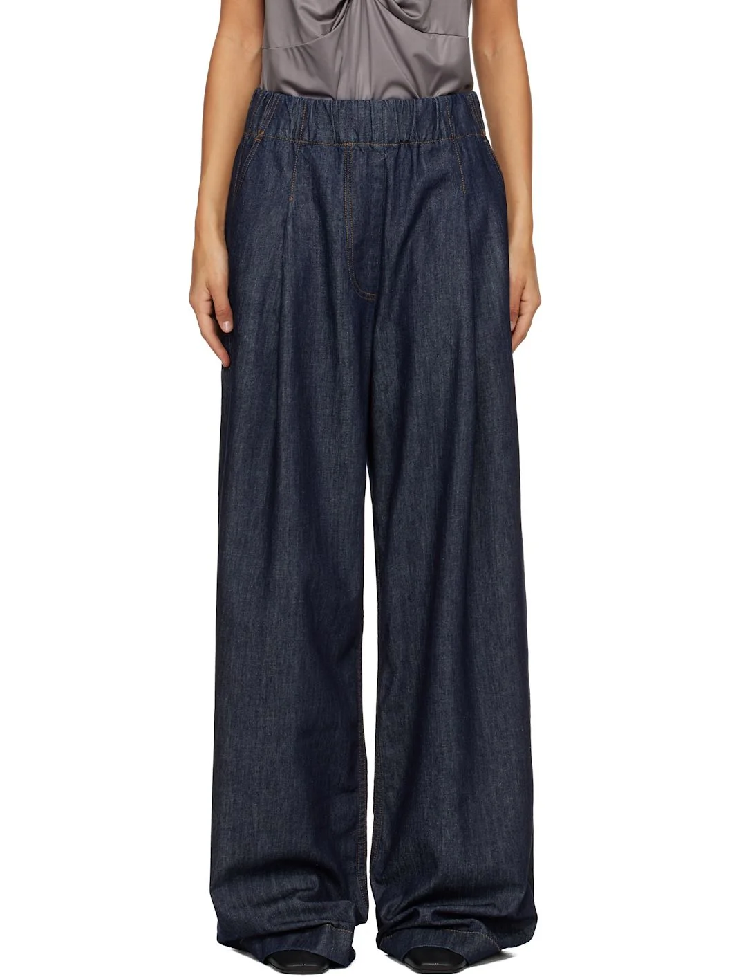 Non-stretch denim jeans. · Wide-leg · High-rise · Concealed drawstring at elasticized waistband · Three-pocket styling · Pleats at front · Contrast stitching in tan Supplier color: Indigo 100% cotton. Made in Tunisia 252358F069005