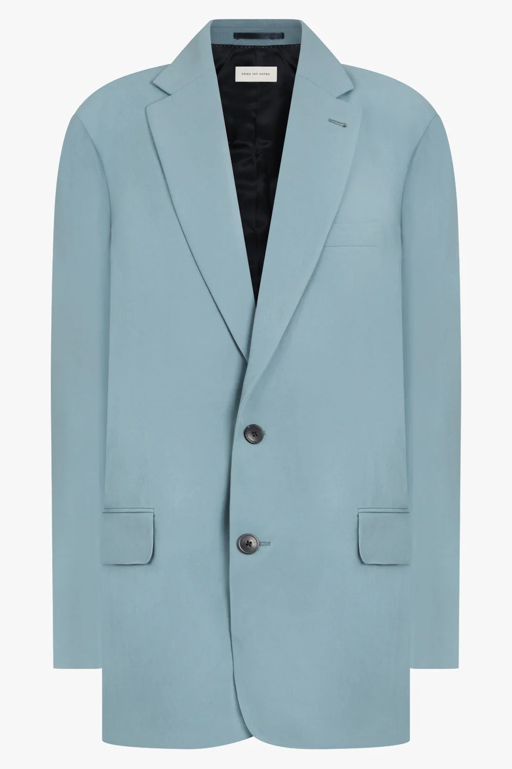 Refined tailoring meets soft structure in the Blunt Single Breasted Relaxed Jacket in Turquoise . Crafted from 100% acetate, the lightweight fabrication offers a fluid drape and subtle sheen, enhancing the relaxed, unstructured silhouette. The single-breasted front and soft peach tone bring a fresh, modern sensibility to a classic wardrobe staple. - Fabrication: 100% Acetate - Lightweight fabric with fluid movement - Relaxed fit with soft tailoring - Single-breasted front with tonal button closure - Notched lapels and lightly padded shoulders - Front welt pockets for functionality Pair with matching tonal trousers from Dries Van Noten or contrast with crisp neutrals for a confident, contemporary look. Measurements S: Bust 92cm, Waist 92cm, Hip 92cm, Length 80cm M: Bust 98cm, Waist 98cm, Hip 98cm, Length 80cm