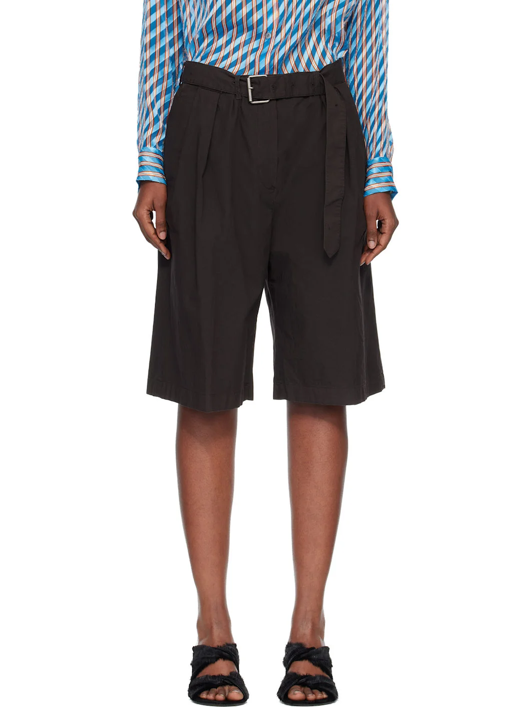 Stretch cotton poplin shorts. · Belt loops and detachable pin-buckle belt at waistband · Four-pocket styling · Zip fly Supplier color: Dark brown 98% cotton, 2% elastane. Made in Morocco 261358F088001