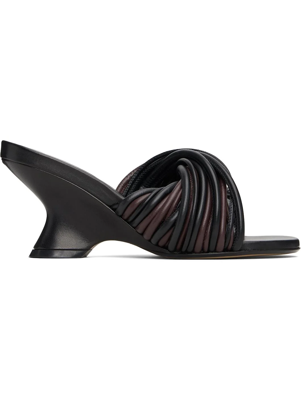 Brown & Black Open-Toe Leather Mule Heeled Sandals