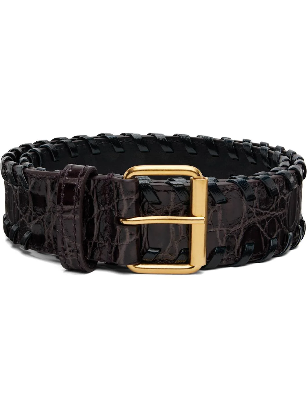 Croc-embossed patent leather belt. · Whipstitching at length · Keeper loop at front · Pin-buckle fastening · W1.75" Supplier color: Taupe Leather. Made in Italy 252358F001005