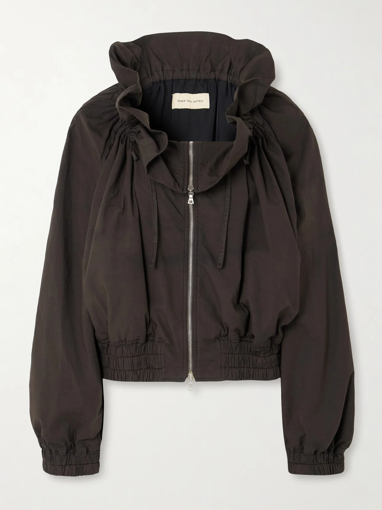 Dries Van Noten's designs are often inspired by nature's beauty - the ruffled neckline of this jacket resembles a blossoming flower. It's tailored from durable cotton-blend canvas and has a slightly loose shape balanced by an elasticated hem. Use the drawstrings to adjust the fit.