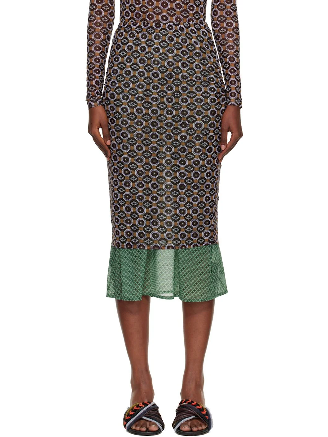 Brown & Green Transparent Mesh Midi Skirt