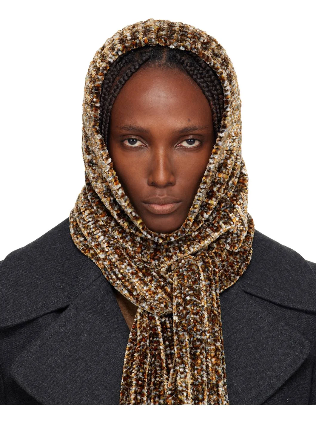 Rectangular rib-knit viscose scarf. · Integrated hood at length · L82" x W6" Supplier color: Grey 100% viscose. Made in Belgium 252358F014003
