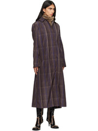 Taffeta coat. · Check pattern throughout · Spread collar · Concealed button closure · Seam pockets at waist · Central vent at back hem Supplier color: Brown 100% polyester. Made in Romania 252358F059009
