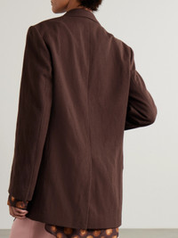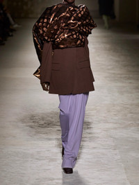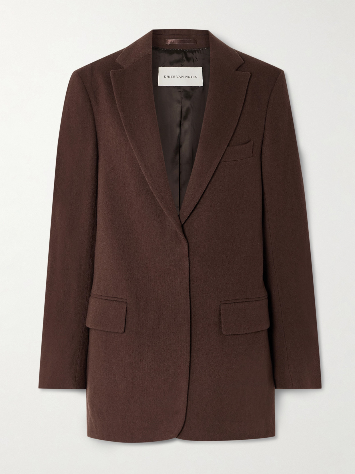 Dries Van Noten's blazer closed the Fall '24 runway. It's tailored from brushed wool-blend twill in a loose fit balanced with wide shoulders and sharp peak lapels. Wear yours with straight-leg pants and midi skirts.