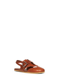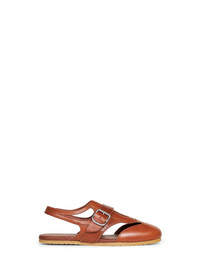 - Ankle strap with elasticated insert; adjustable instep strap with metal buckle - Round closed toe - Smooth calf leather upper with serrated tongue, cut-out and topstitching details - Leather insole - Thin rubber sole - The shoe corresponds to a it 38 size - Burgundy color - 100% calf leather - Made in italy Furs & Skins: Calf Leather100 % Made in: ITALIA Season: P26 0118100102358
