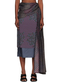 Burgundy & Green Layered Tie Motif Midi Skirt