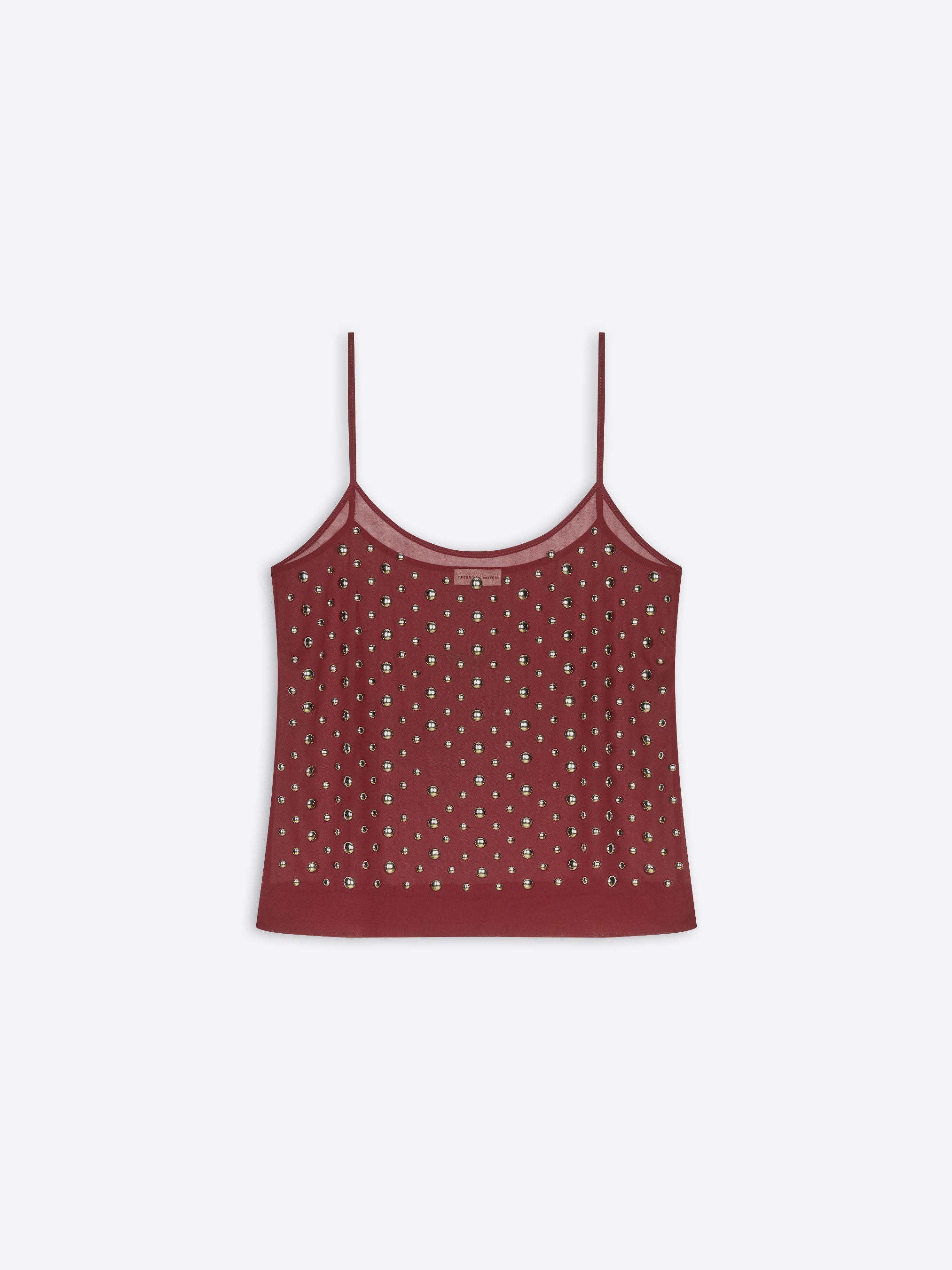 Tank top in voile, with hot fix embellishment. DETAILS - 100% Polyester. - Hot fix embellishment. - Regular fit. Sleeveless. - Ref: 251-010740-1030 SIZE AND FIT Model is 177 cm / 70 inches and wears size 34.
