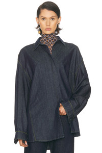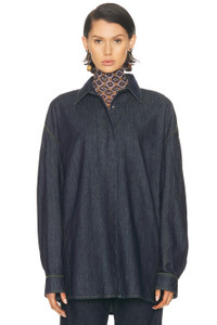 Details - 100% cotton - Made in Tunisia - Machine wash - Hidden button down closures - Zigzag stitching detail at seams - Denim textile - Button cuffs - Darting at chest - Our Style No. DRNF-WS8 - Manufacturer Style No. 252-010786-2382