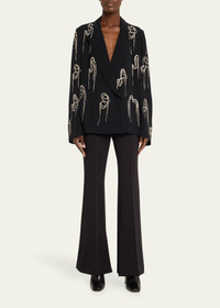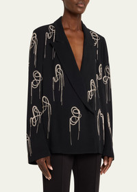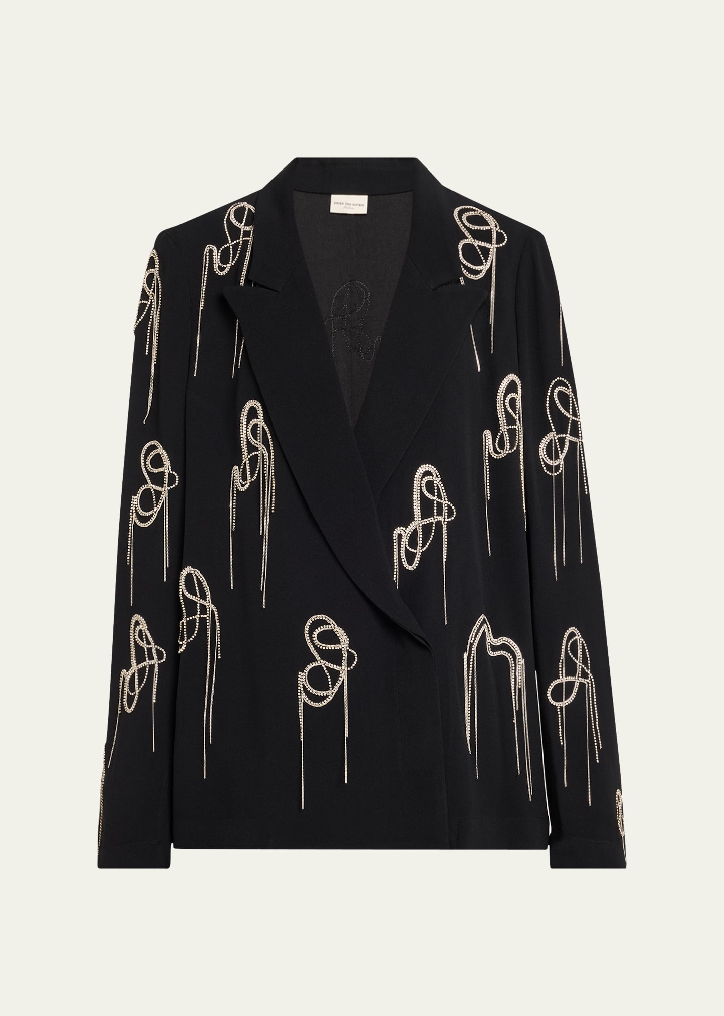 Dries Van Noten "Caplana" blazer with chain crystal embellishment Peak lapels; asymmetrical single-button Long sleeves Relaxed fit Acetate/viscose Unlined Imported Online Inquiries: BGS21_B9EVV| Store Inquiries: #4857600
