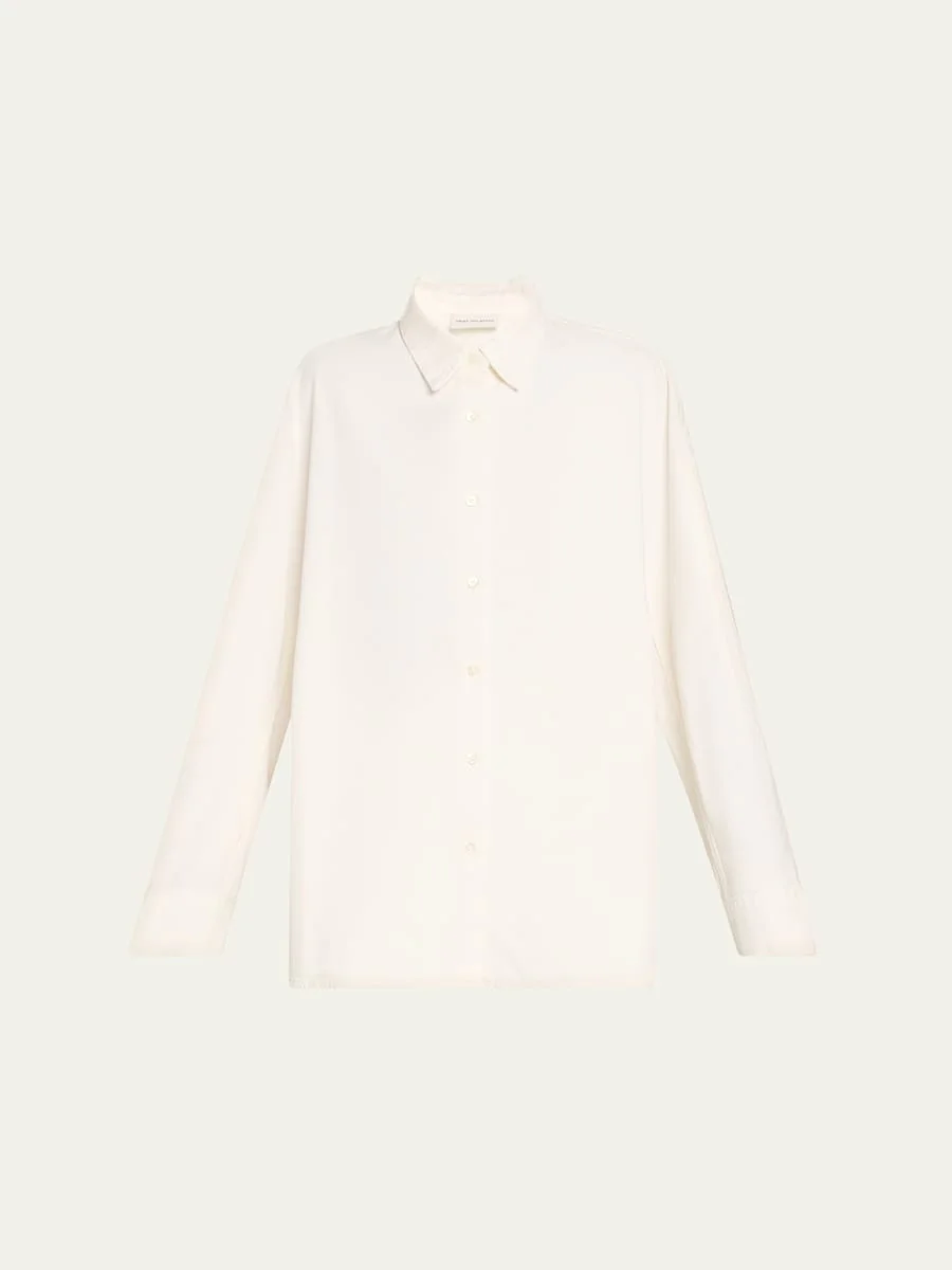 Dries Van Noten "Casio" denim shirt Spread collar; button front Long sleeves; button cuffs Wide fit Rounded hem Cotton Imported