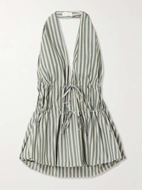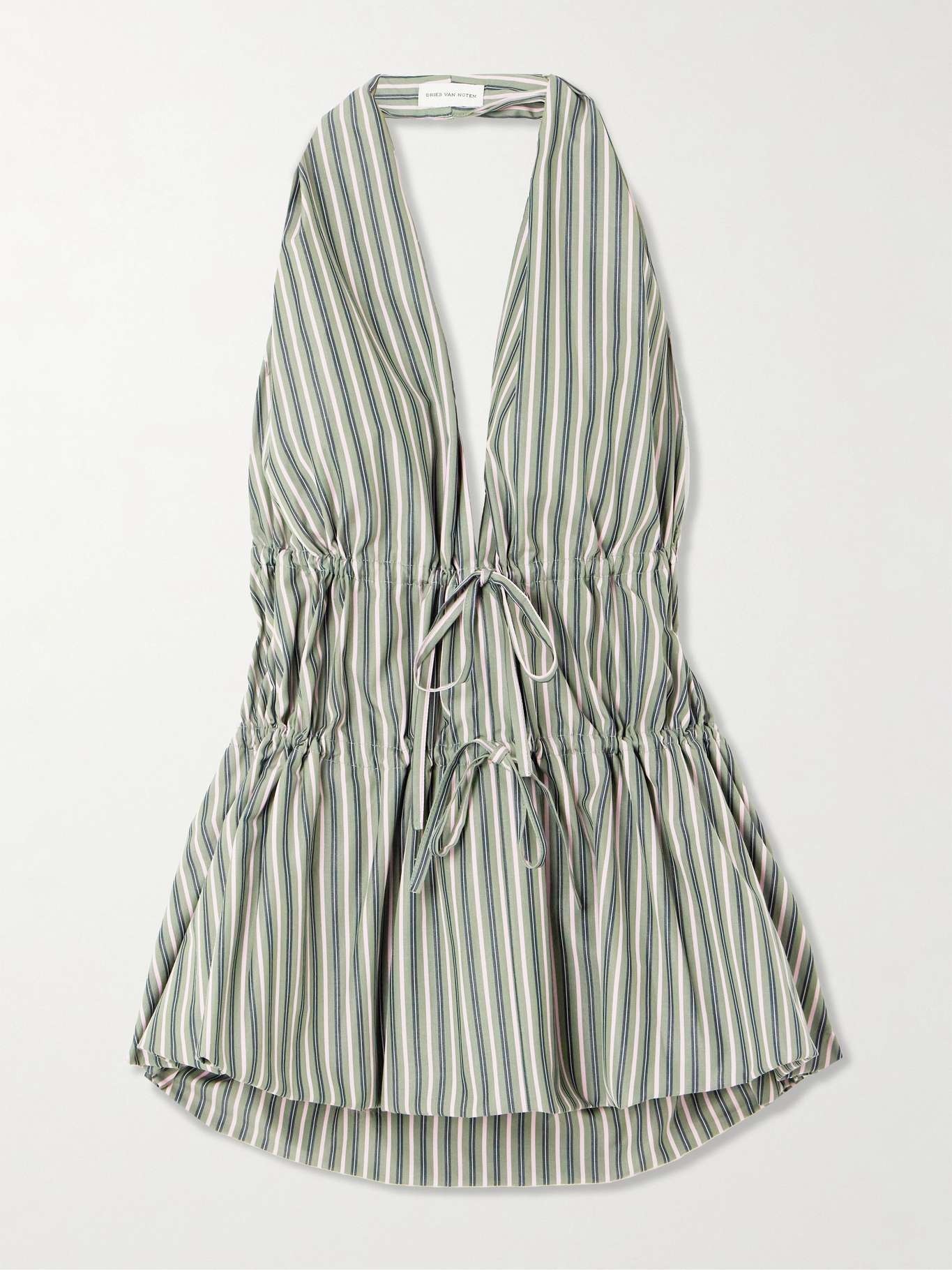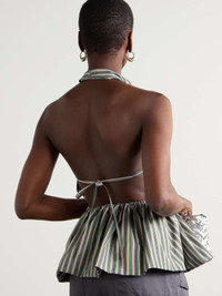 Dries Van Noten's striped top is threaded with slim ties to cinch and define the peplum shape. Made from cotton, it has a plunging halter neckline and an open back. Size & Fit - Fits true to size, take your normal size - Designed for a slightly loose fit - Ties at the waist for an adjustable fit - Mid-weight, non-stretchy fabric - Model is 177cm/ 5'10" and is wearing a FR 36 Model measurements: - Bust: 80cm/ 31.5" - Waist: 60cm/ 23.5" - Hip: 89cm/ 35" Details & Care - Multicolored cotton - Ties at front - 100% cotton - Dry clean
