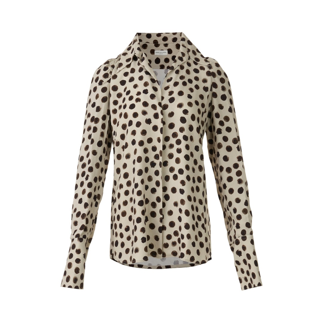Beige polka dot crepe shirt. Cuffs at the French with cufflinks. Concealed buttons on the front. product code: 2420107269013005 COMPOSITION 100% viscose MADE IN TUNISIA