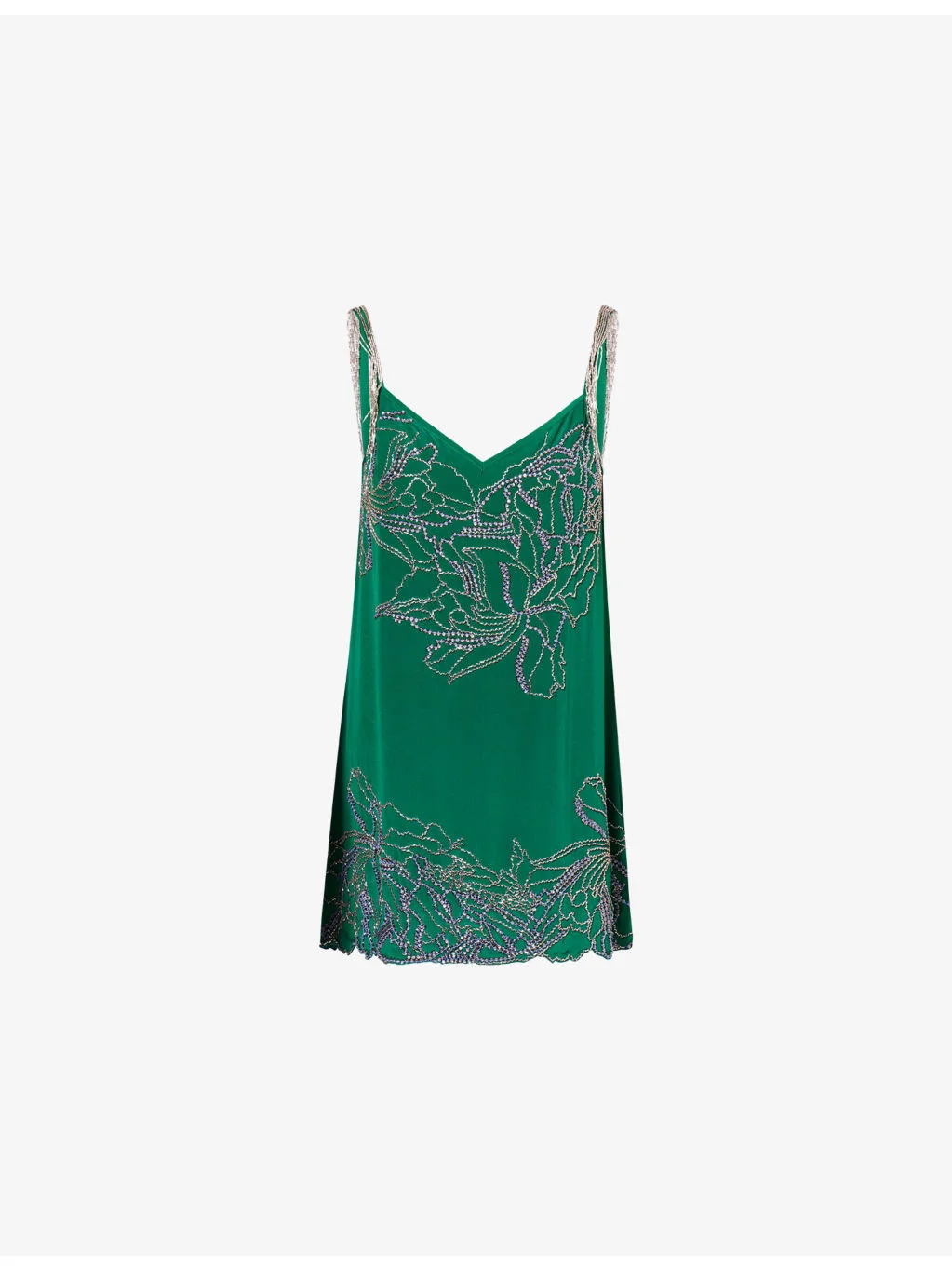 PRODUCT DETAILS - Dries Van Noten silk top - 100% silk - Regular fit, V-neckline, long sleeves, all-over bead embellishment - Dry clean - Made in India - True to size - Size UK 8: length 30in / 76cm - Model is 5ft 10in/1.78m and wears a size UK 8 - Lightweight, non-stretch Ref: R04553124