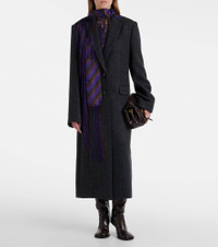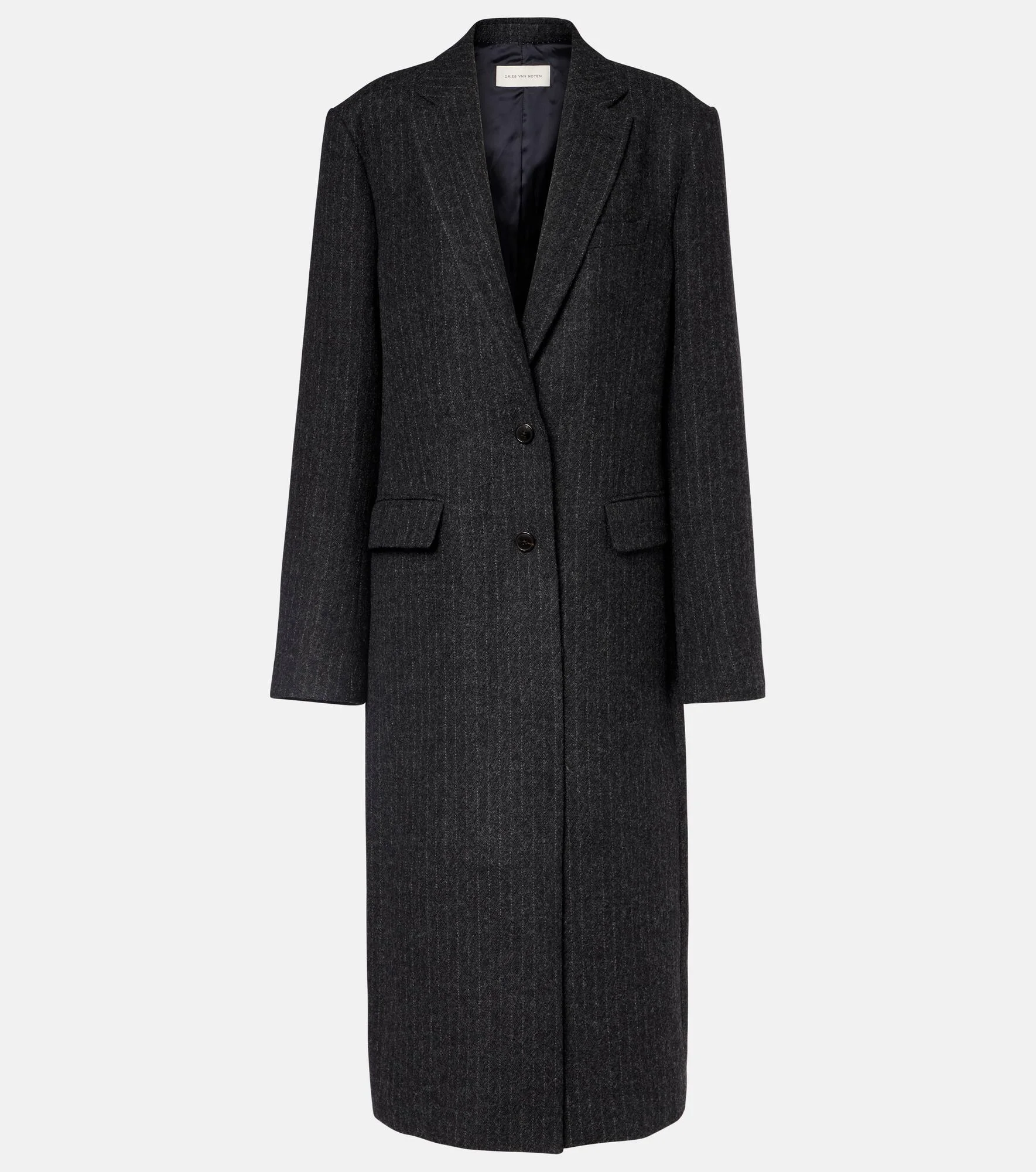 Juxtaposing a poetic sensibility with distinctive designs, Dries Van Noten creates styles that are always unique. This coat is crafted from pure wool, and the long silhouette is finished with subtle chalk stripes. Product Details - Material: 100% wool - Care instructions: dry clean - Made in Morocco - Designer color name: Dark Grey - Item color: gray - Lining: 100% viscose - Closure: buttoned front - Notched lapel - Pockets: flap pockets, angled chest pocket - Cuff: four buttons - Vent: single - Item number: P01092103 Size & Fit - True to size - Shoulder pad inserts - Straight fit - Non-stretchy fabric - The model seen in the picture is 178cm-5'10" and wearing a size FR 36